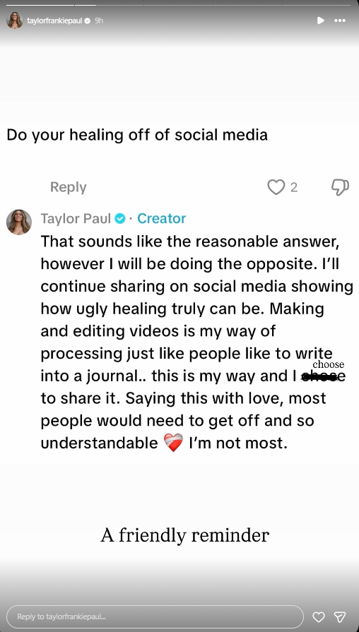 Taylor Frankie Paul Pushes Back Against Calls To Leave Social Media