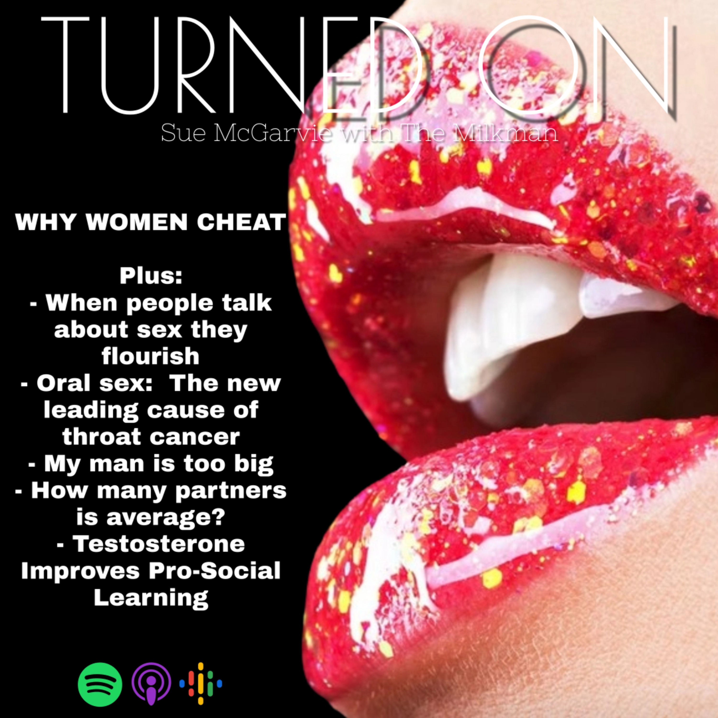 This week Sex Therapist Sue McGarvie and radio host John Mielke dive into WHY women cheat. ... And they do fyi.Plus:- When people talk about sex they flourish- Oral sex: The new leading cause of throat cancer- My man is too big- How many partners is average?- Testosterone Improves Pro-Social Learning... And a slut party?Your questions and comments ALWAYS welcome here. Sue: sue@sexwithsue.comJohn: milky@BlastTheRadio.com Hosted on Acast. See acast.com/privacy for more information.