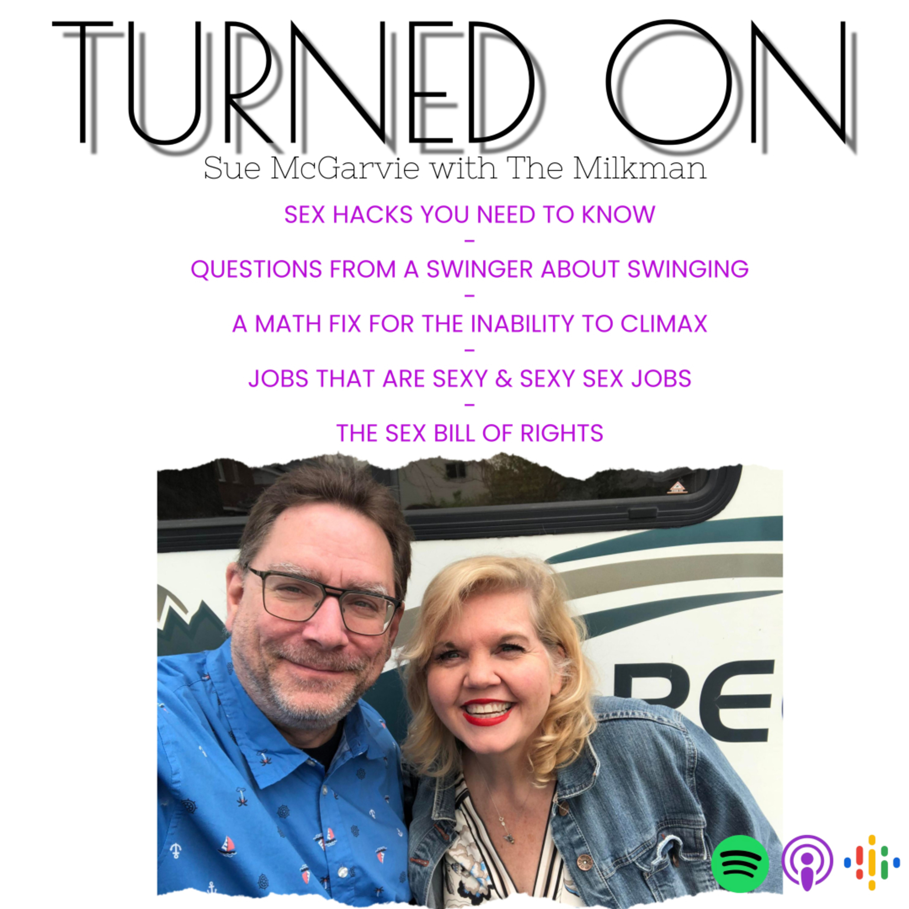 This week's show recorded live in the RV OF LOVE (as Sue calls it) or the BTRV FOR MENTAL HEALTH (and John calls it) - either way it has become our cozy little podcast home!NOTE: We're now on Lemon Social (Turned On The Podcast) and on Youtube so if you like to watch, you can! *wink*This week:SEX HACKS YOU NEED TO KNOW-QUESTIONS FROM A SWINGER ABOUT SWINGING*John recommends listening to the early episodes of Accidental Swingers for more on this question-A MATH FIX FOR THE INABILITY TO CLIMAX-JOBS THAT ARE SEXY & SEXY SEX JOBS-THE SEX BILL OF RIGHTSSue McGarvie: sue@sexwithsue.comJohn Mielke...